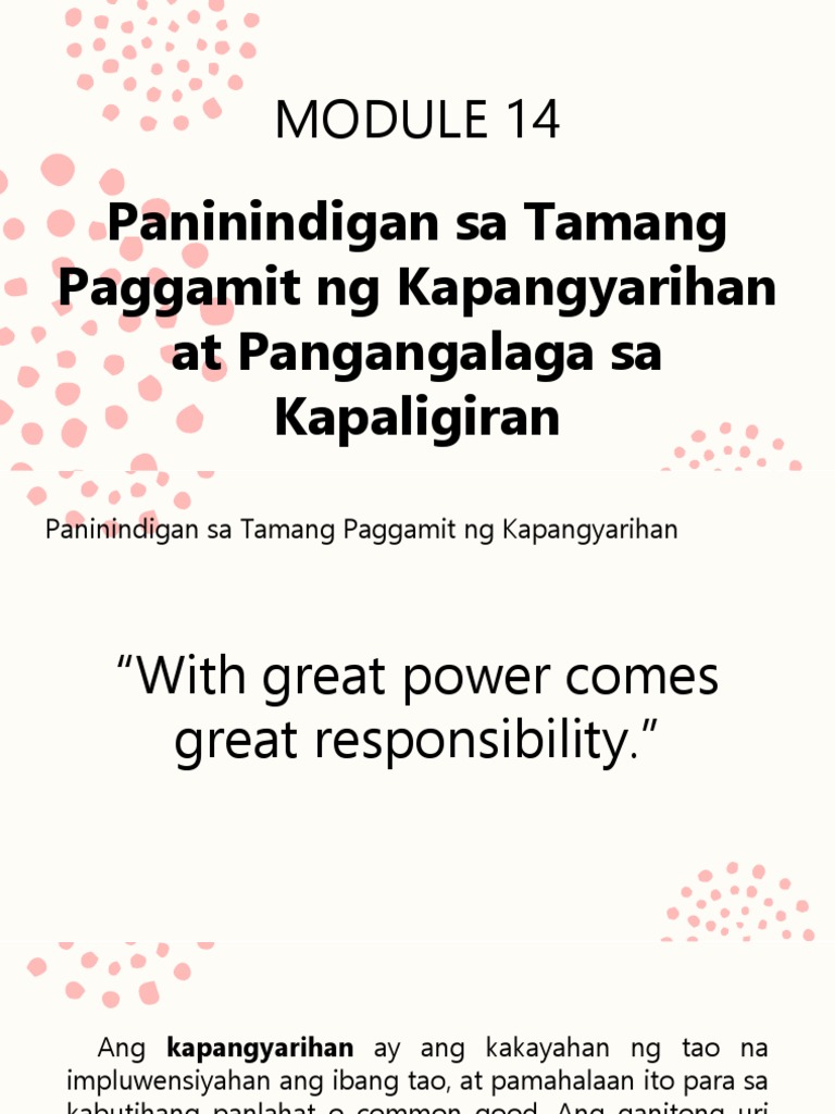 Paraan Ng Paggamit Ng Rosaryo. Paninindigan sa Tamang Paggamit ng Kapangyarihan at Pangangalaga sa Kapaligiran Paninindigan sa Tamang Paggamit ng Kapangyarihan With great power comes great responsibility Ang kapangyarihan ay ang kakayahan ng tao na impluwensiyahan ang ibang tao at pamahalaan ito para sa kabutihang panlahat o common good. Hanggat naisasakatuparan natin ang mga ito at naisasagawa araw-araw gamit ang ating puso naniniwala ako na ang Panginoon ay makikinig sa ating mga panalangin.